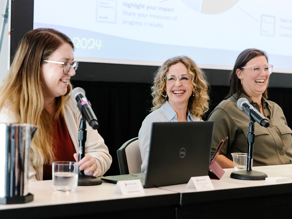 PEAK Partnerships Director Davis Fischer led a panel of five powerhouse women to explore this issue: Impact Genome Registry™ Head of Product and Senior Vice President Sandi Boga, Roots and Wings Foundation Grants and Impact Manager Jamie Carroll, Candid Director of Product Management Alison Jannette, and Charity Navigator Board Chair Hope Lyons.