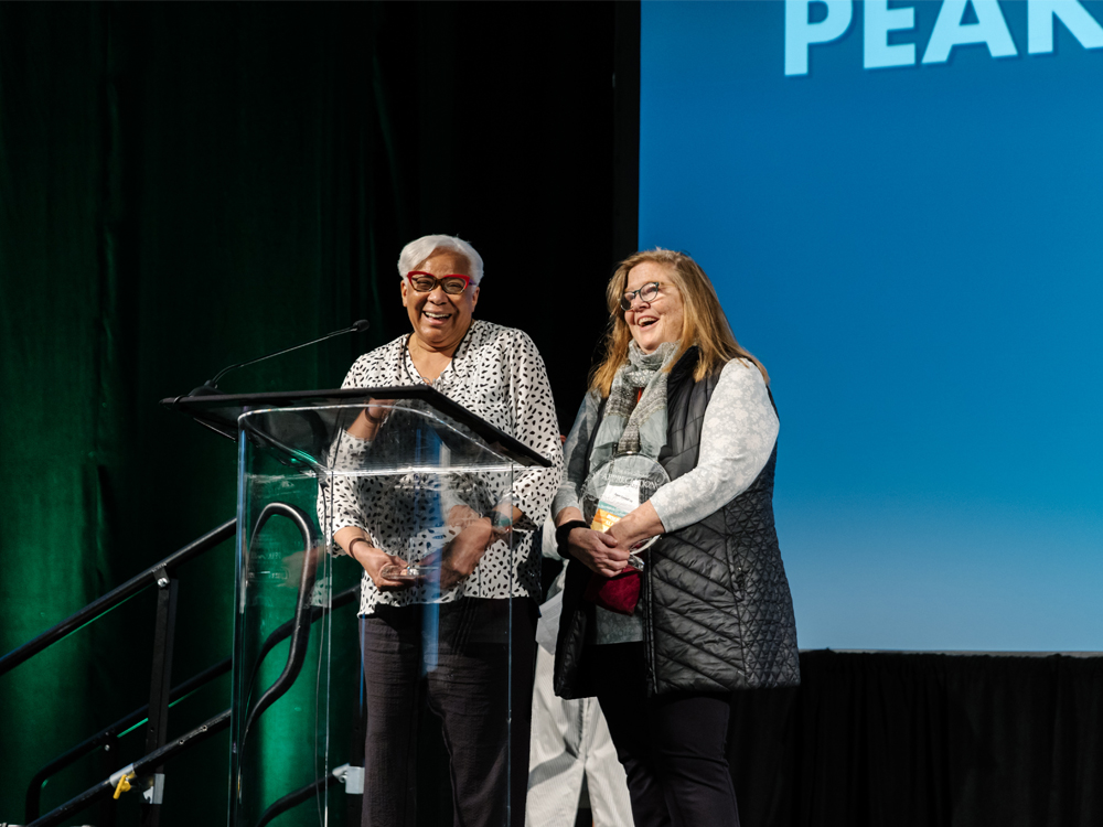 Image: Margaret Egan and Ursula Stewart were recognized as the inaugural PEAK Emeritus Fellows at PEAK2024. Photo by Julie Harmsen.
