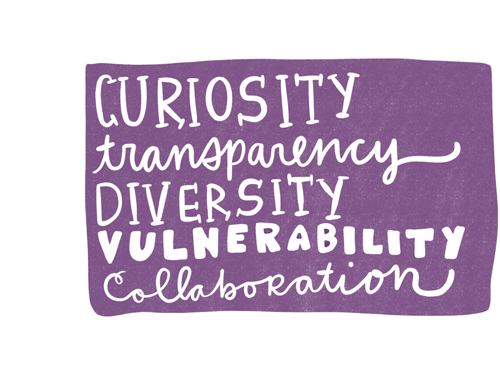 Curiosity. Transparency. Diversity. Vulnerability. Collaboration.