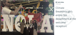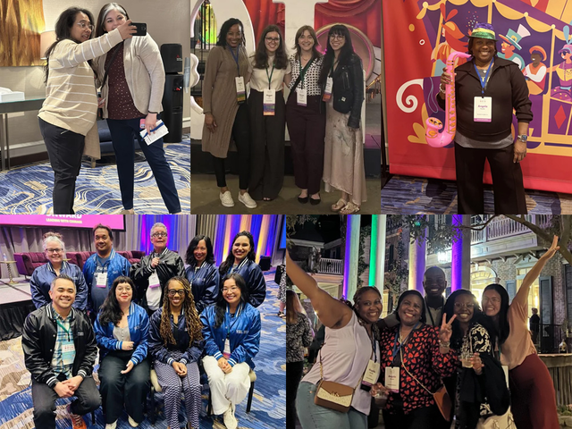 Memories were made at the Welcoming Reception at Mardi Gras World, a workshop and warehouse where Mardi Gras floats are made. From left: Inna shared a group photo in front of a stylish sun. Edberte took a snapshot of a reunion of the PEAK Black Caucus cochairs. Sarah Sprott got a team photo in front of the lit-up Crescent City Connection. Tashie Sloley shared that Climate Breakthrough’s entire operations department joined PEAK2025!
