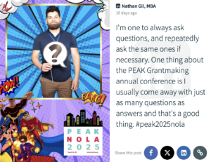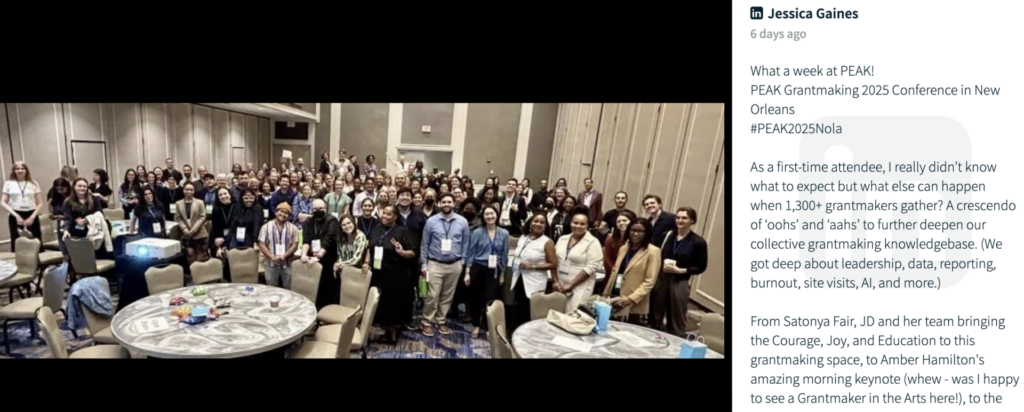 For the past five years, our social wall has been a vibrant virtual space where our convening attendees share quotes, thoughtful takeaways from speakers, photos, and other highlights from our time together. We had our highest participation yet at PEAK2025 in New Orleans!