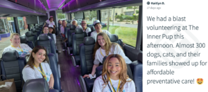 From left: Kaitlyn B. posted a snapshot of our generous volunteers after an afternoon volunteering with Inner Pup which, with support from Maddie’s Fund, hosted an event that provided health care services for pets. Liz Donohue shared the must-try coffee and beignets from the historic Café Du Monde.